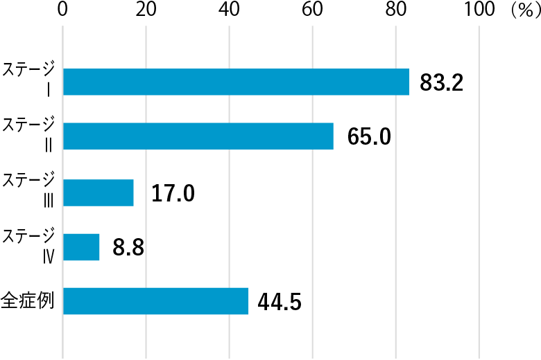 乳がんの中で、増加している早期発見治療例の割合を知る指標です。