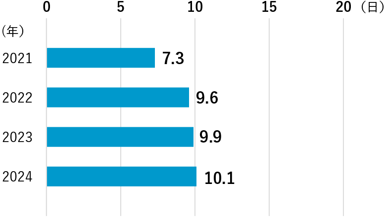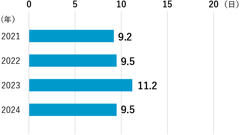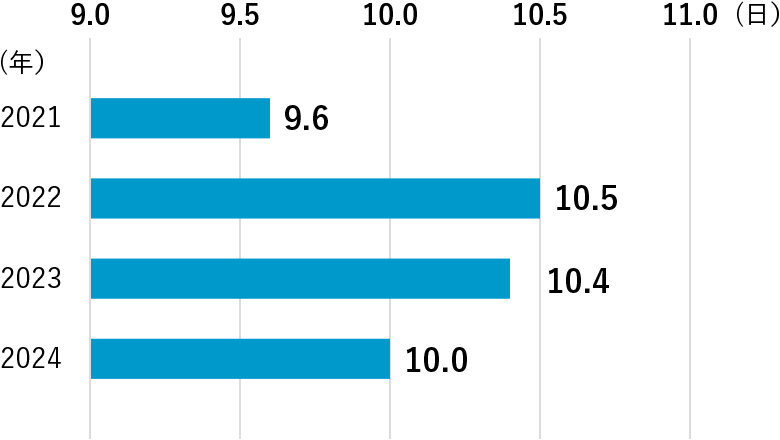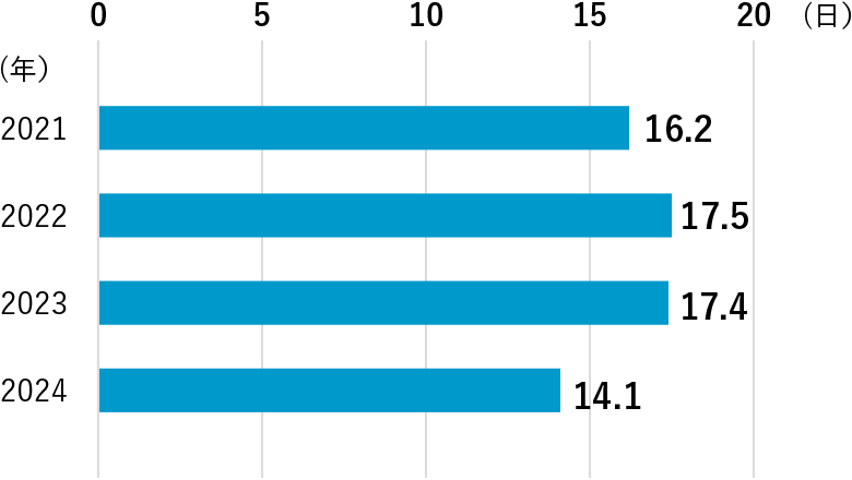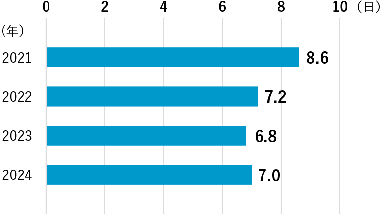 質の保証と医療の効率化が高いレベルで達成されるほど、平均在院日数は短縮すると言われています。当院の平均在院日数は大変良いレベルと考えています。