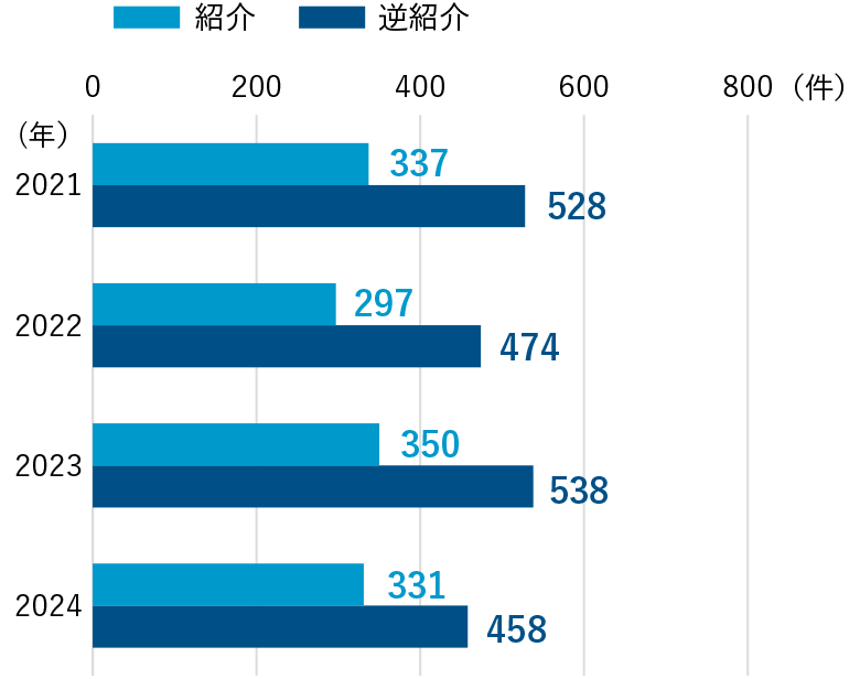 当院の糖尿病地域医療における役割として、外来初期指導後や入院後退院時の早期逆紹介が多くなっています。初診患者さまの半数以上は方向性が決まり良好な経過が予想されるため、HbA1c値が下がる前に積極的に地域の診療所などへ逆紹介しています。HbA1c値は患者さまの過去12か月間の平均血糖値を反映する指標で、6.5未満であれば血糖コントロールは「良」と評価されます。
