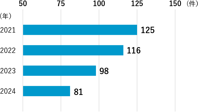 患者さまにとって苦痛と感じる30分以上の診療待ち時間(患者満足度調査結果より)の発生件数を低減し、CS向上を目指すための指標です。