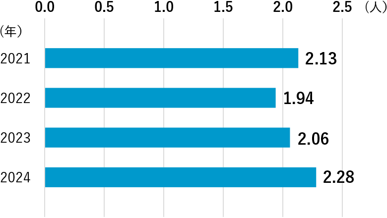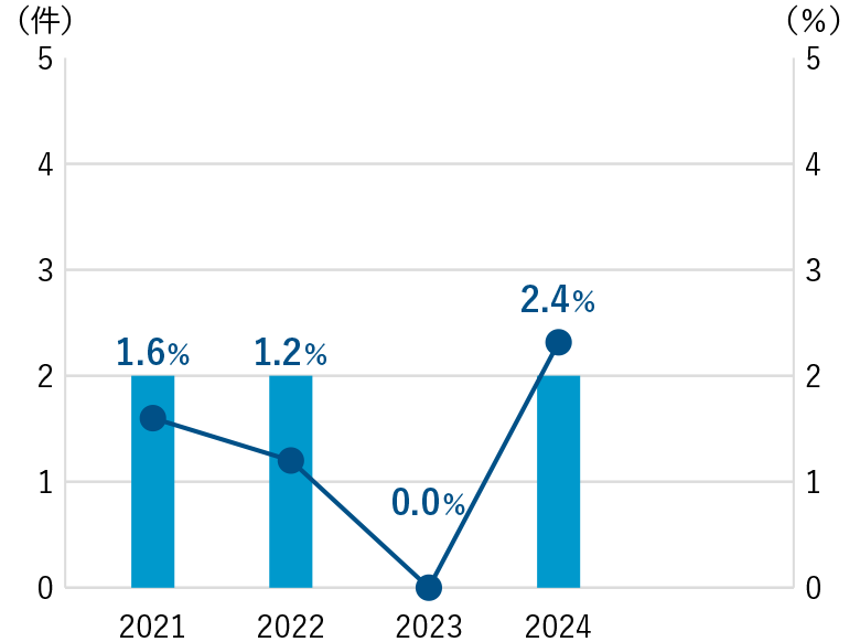肺炎患者さまに対して適切な医療やケアの介入がなされているかどうかの総合的な指標と言えます。肺炎は呼吸器科入院患者の中で最多の疾患です。平均在院日数と初期治療成功率を経時的に追跡することで、呼吸器科における肺炎診療の質評価と改善を図ります。